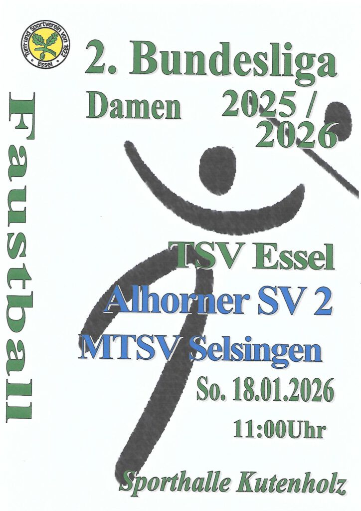 Zwei Talente des TSV Essel nehmen vom 21. bis 23. November in Langen (Hessen) am Bundeslehrgang der U 18-Nationalmannschaft teil. Valea Meyn und Mara-Sophie Bartsch erhielten durch Bundestrainerin Heike Hafer die Einladung zur ersten Sichtung. Ziel ist dort die Bildung der Nationalmannschaft für die Weltmeisterschaft, die im nächsten Juli in der Schweiz stattfindet.