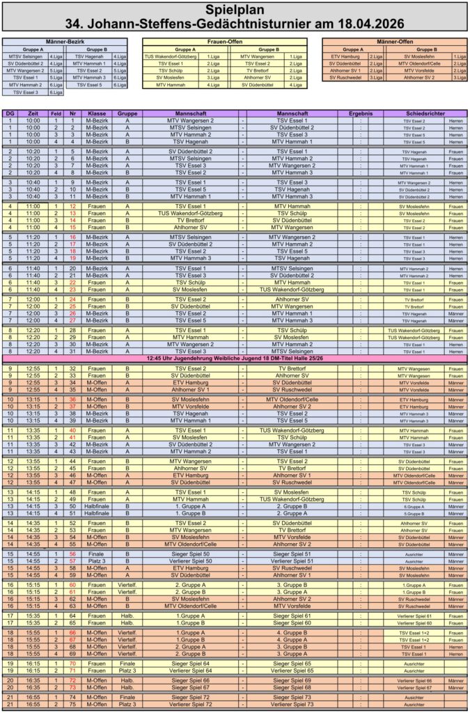 Hier der Spielplan für das Johann-Steffens-Gedächtnis-Turnier am kommenden Samstag: